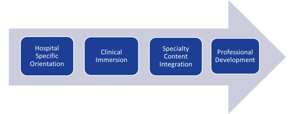 With this program, we aspire to create an environment where our nurses can transition seamlessly from academia to practice, gaining the confidence and competence they need to provide the best possible quality care to our communities. To reach this goal, the program: